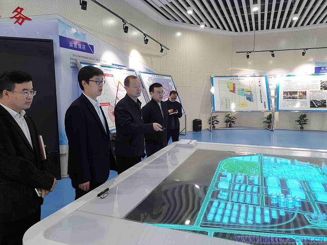 在石家莊國際陸港,季鵬一行先后參觀了中歐班列、集裝箱裝卸區、作業場站、項目展廳,并認真聽取遠景規劃、保稅物流中心建設以及多式聯運等情況介紹。?