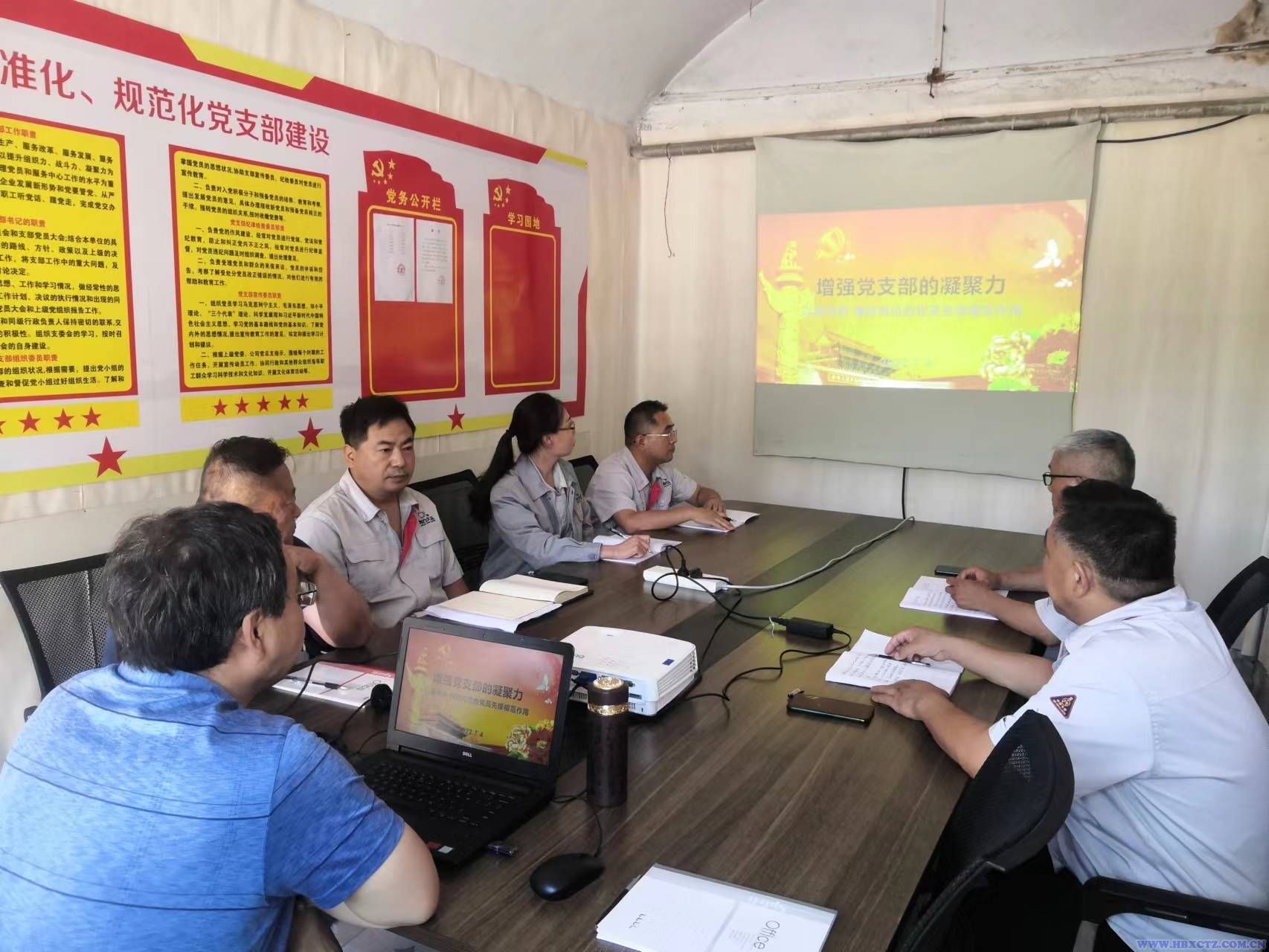 為慶祝建黨101周年,迎接黨的二十大勝利召開,7月7日久樂瑞豐公司黨支部在公司“窯洞”黨員活動室開展了“書記講黨課”活動,支部全體黨員及入黨積極分子共計8人參加。