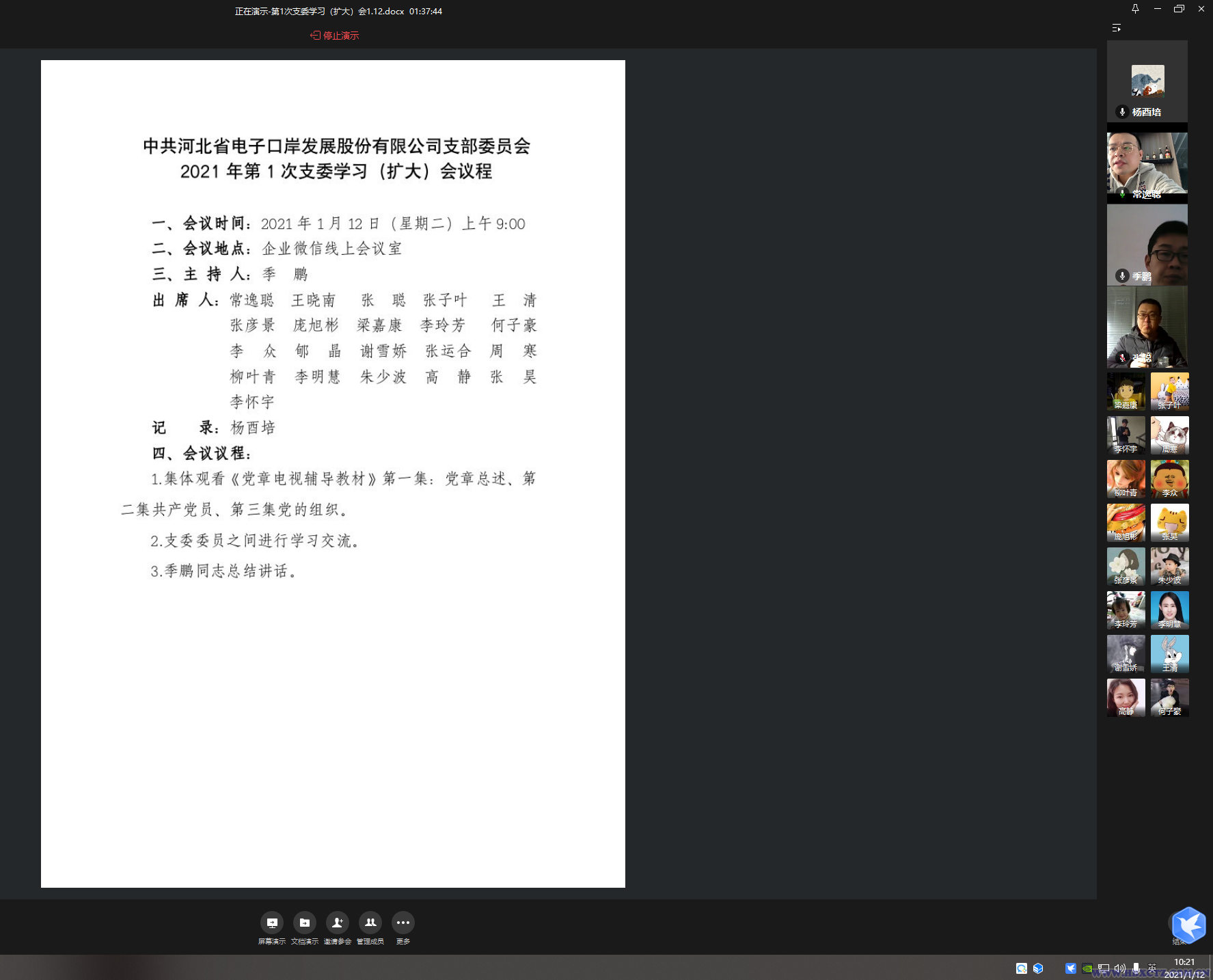 建立居家辦公工作機制。第一時間做好疫情排查、統計、上報工作。充分運用現代信息技術做好遠程辦公,通過電話視頻會議,召開研討2021年度工作目標、重點項目實施、組織架構、預算管理、支委學習會、決策流程等各項會議,確保復工復產后各項工作有序銜接。