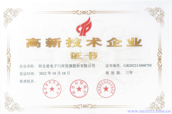 近日,電子口岸公司順利通過高新技術企業認定管理工作領導小組認定,并取得證書,成為高新技術企業,開啟了高質量發展新篇章。